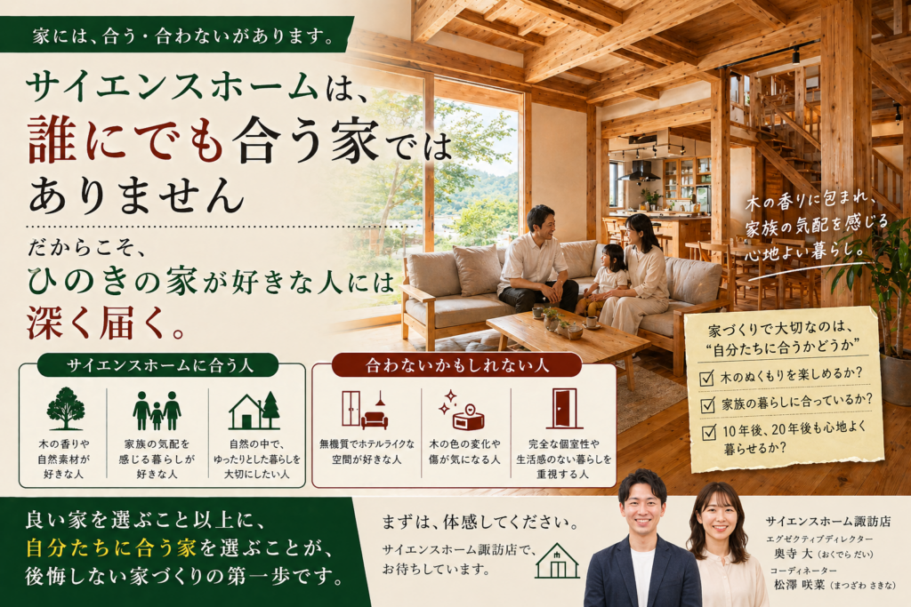 サイエンスホーム諏訪店 国産ひのき・無垢材をふんだんに使った『木の家』 サイエンスホーム諏訪店のアカウントになります!
