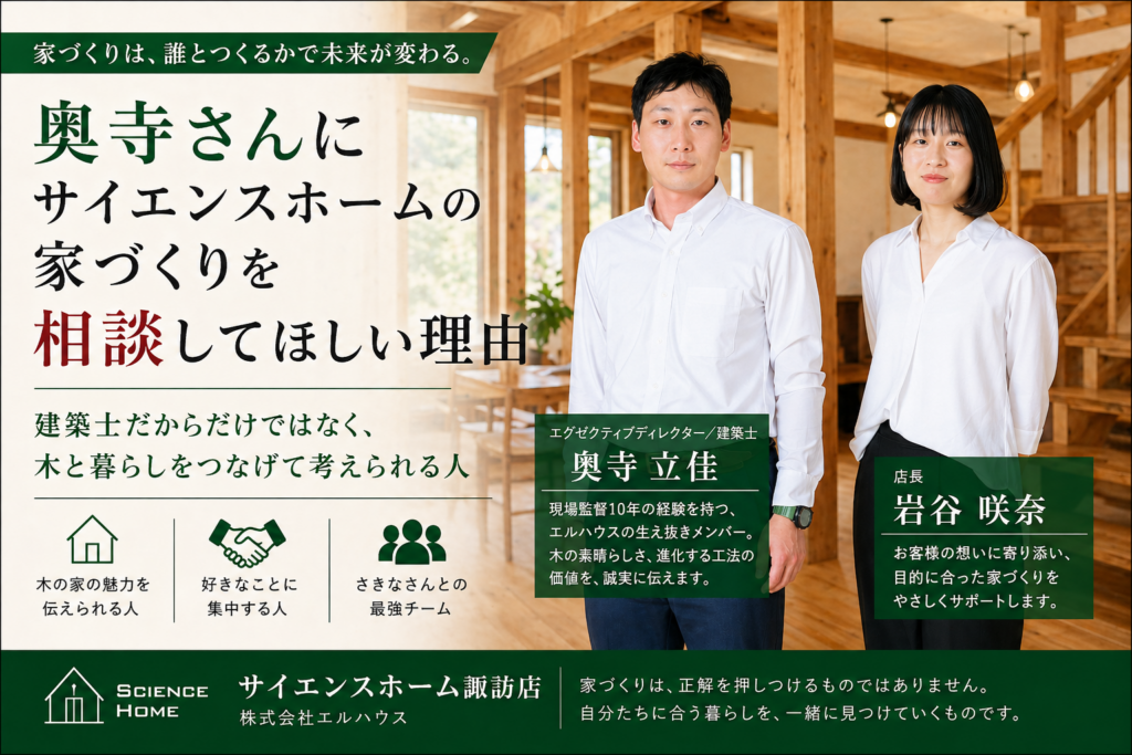 「サイエンスホームの家は、日本の伝統工法「真壁づくり」を採用した住まいです。