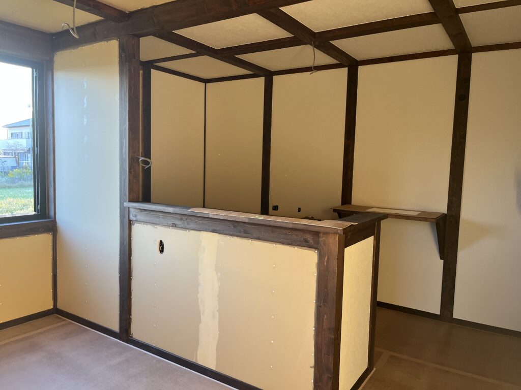 大工さんの工事が完了して塗装工事が行われているところでした。
