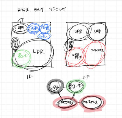 なんとなく頭の中でぼんやりと思い描いているのを形にするのがゾーニングです。