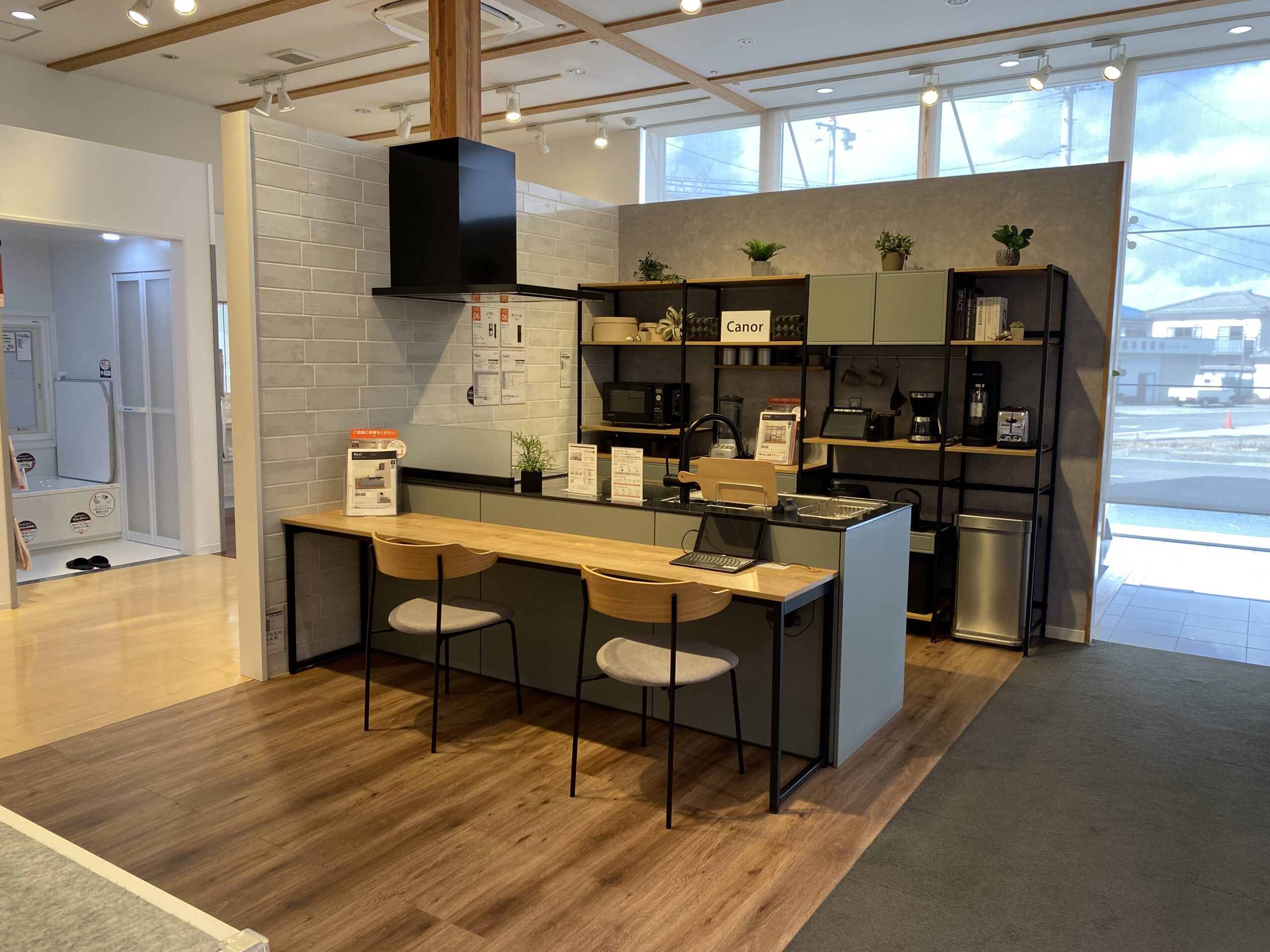 ショールームは、キッチン、お風呂、洗面台、トイレの水回りが