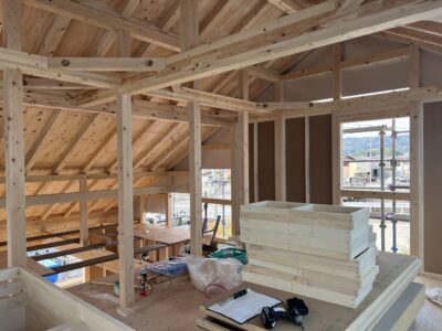 在来工法にツーバイのパネルを合わせたハイブリット構造にもなっています。