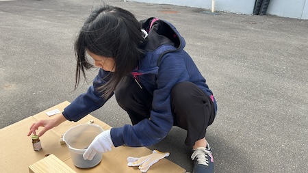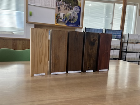 先日、咲奈さんと柱の塗装サンプル作成を行いました。