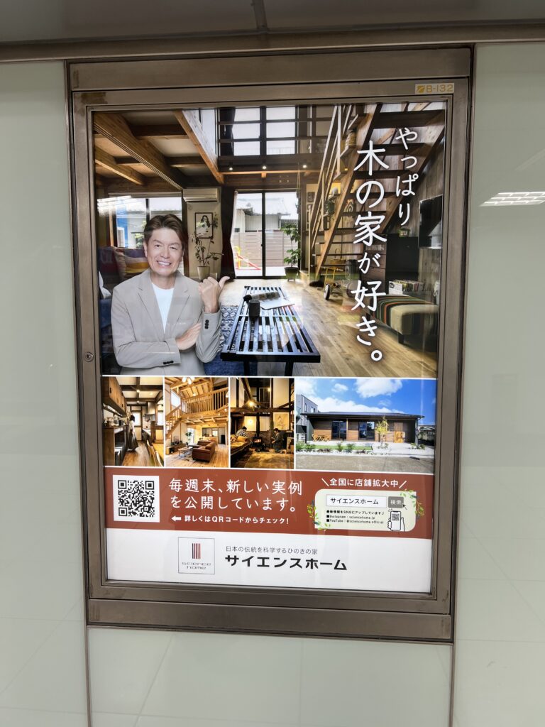 新幹線を降りて、駅構内に行くとサイエンスホームの広告が