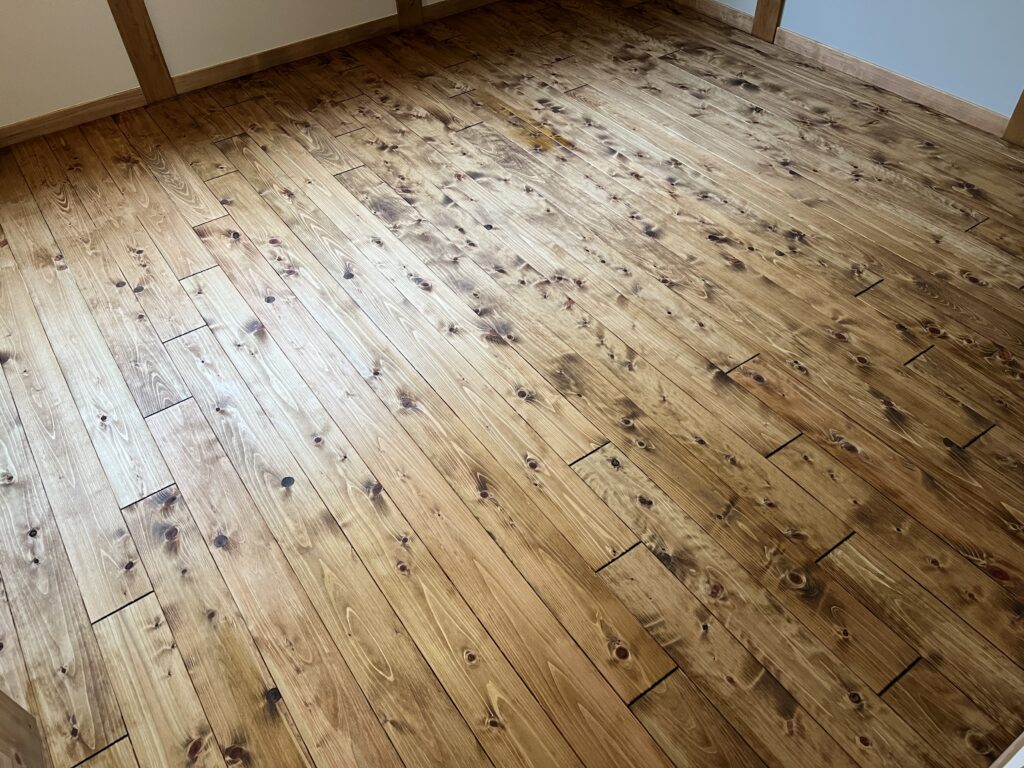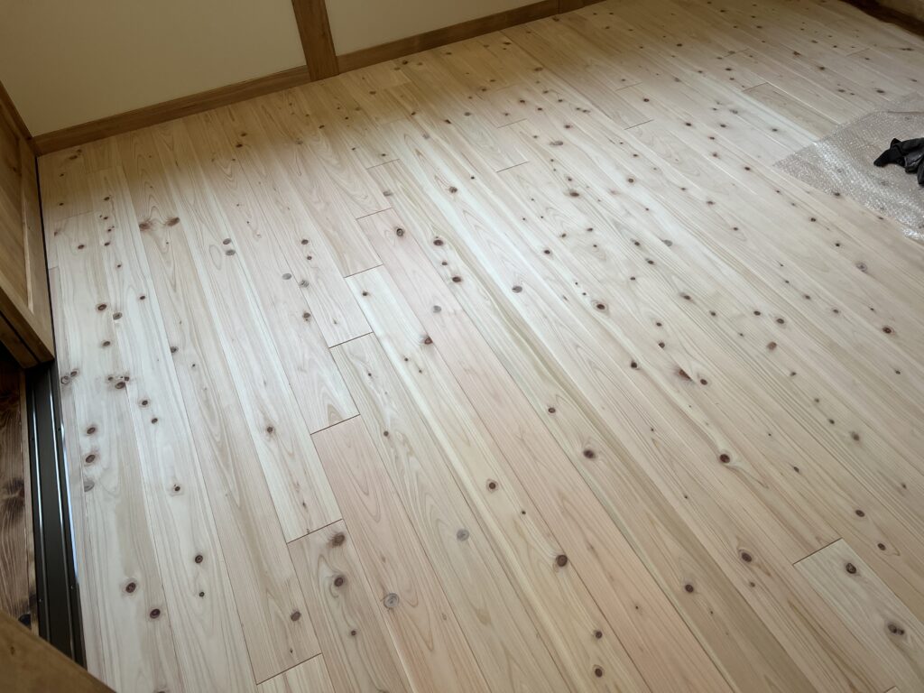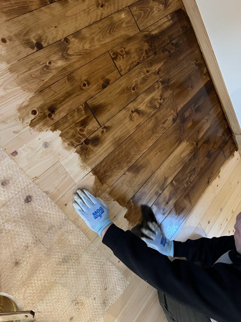 塗装後の拭き取りをお施主さまが行っている様子です。