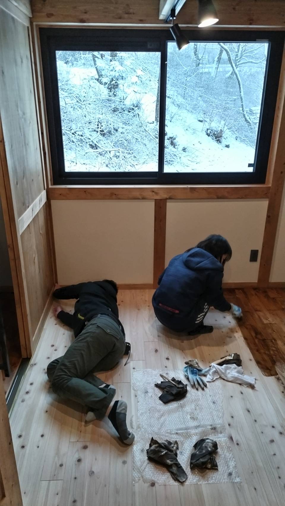 塗装後の拭き取りをお施主さまが行っている様子です。