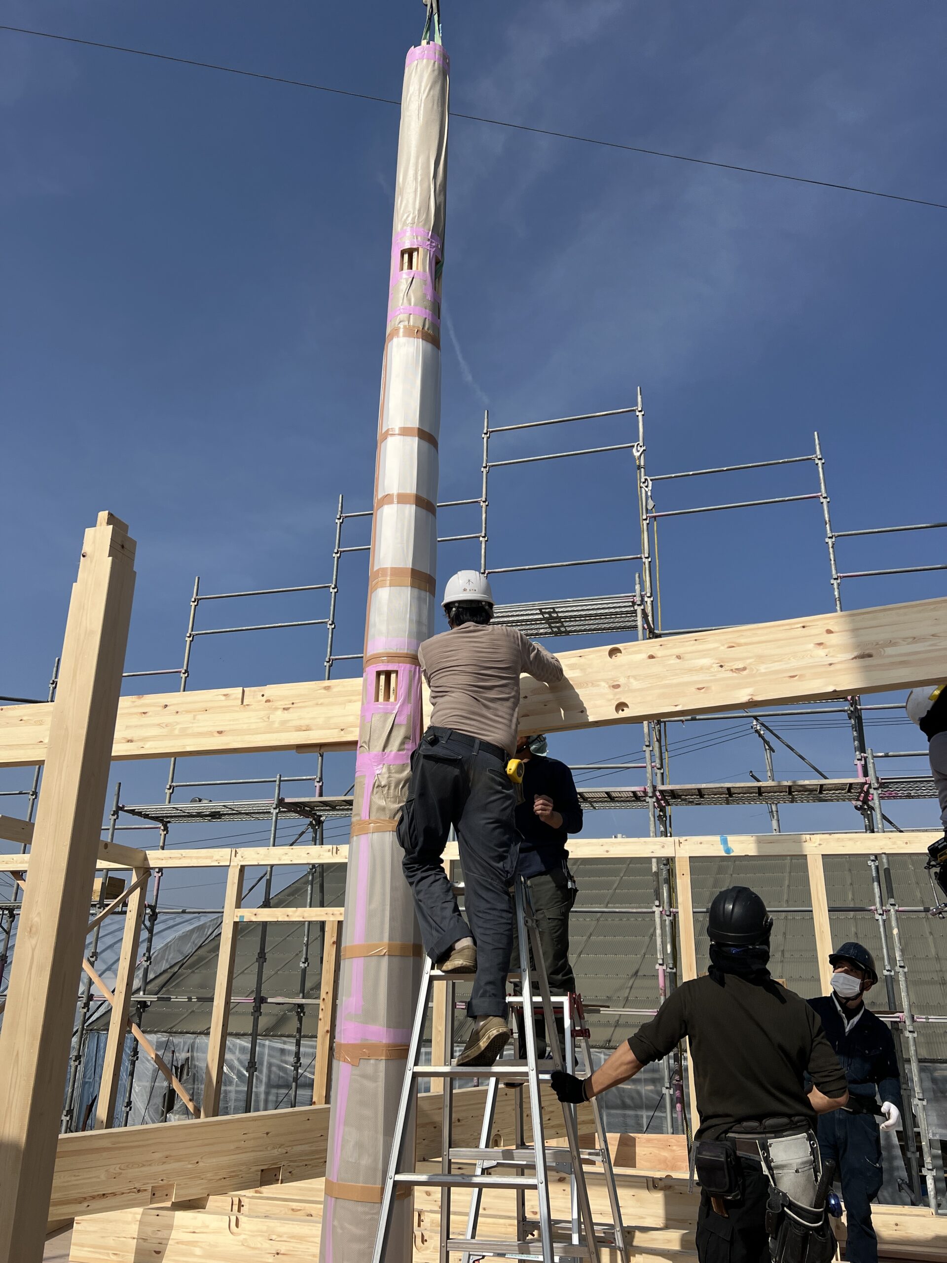 大黒柱が建っていく様子を僕も一緒に見届けさせて