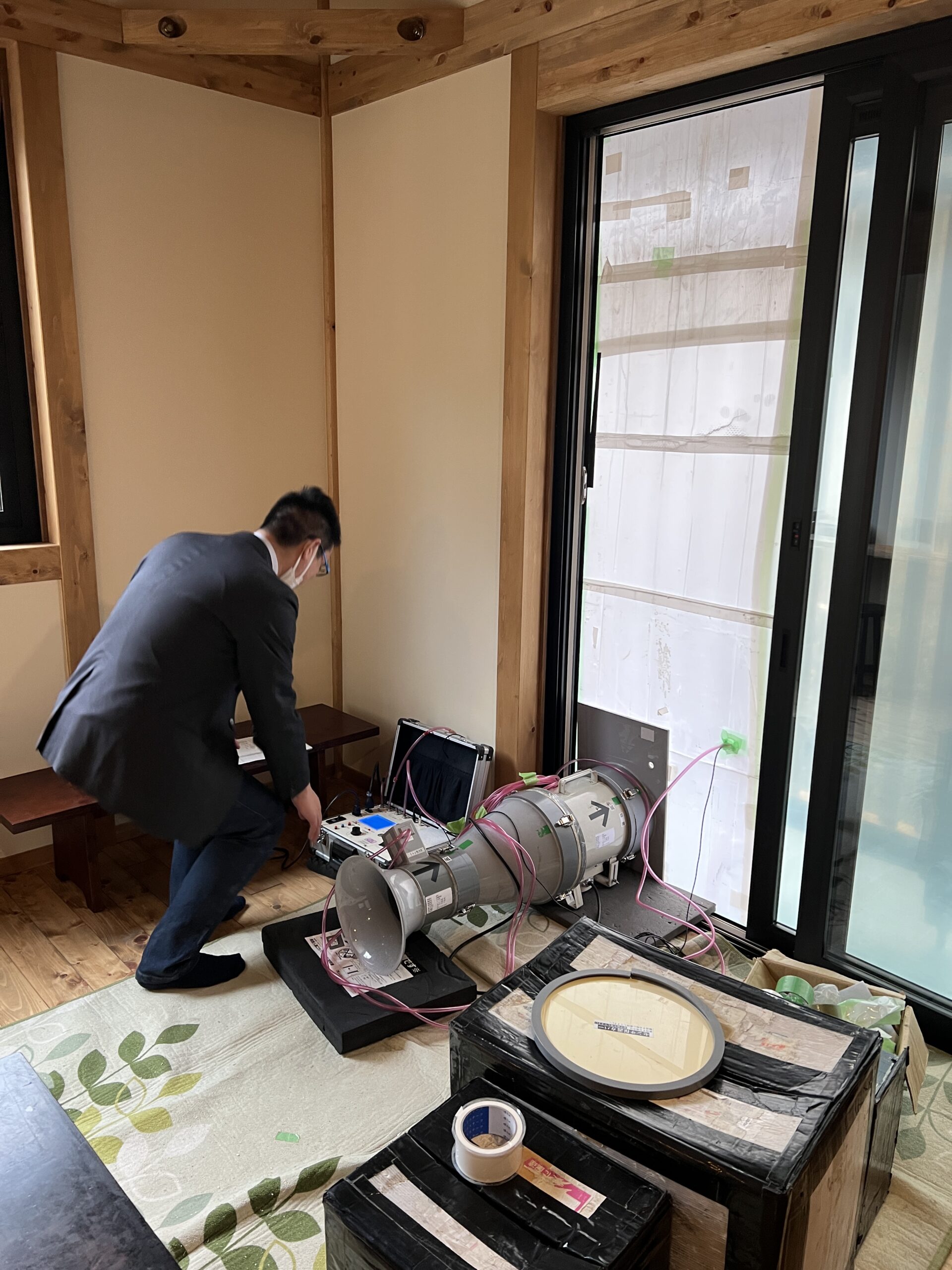 先日、お客様のお家で気密測定を行いました。