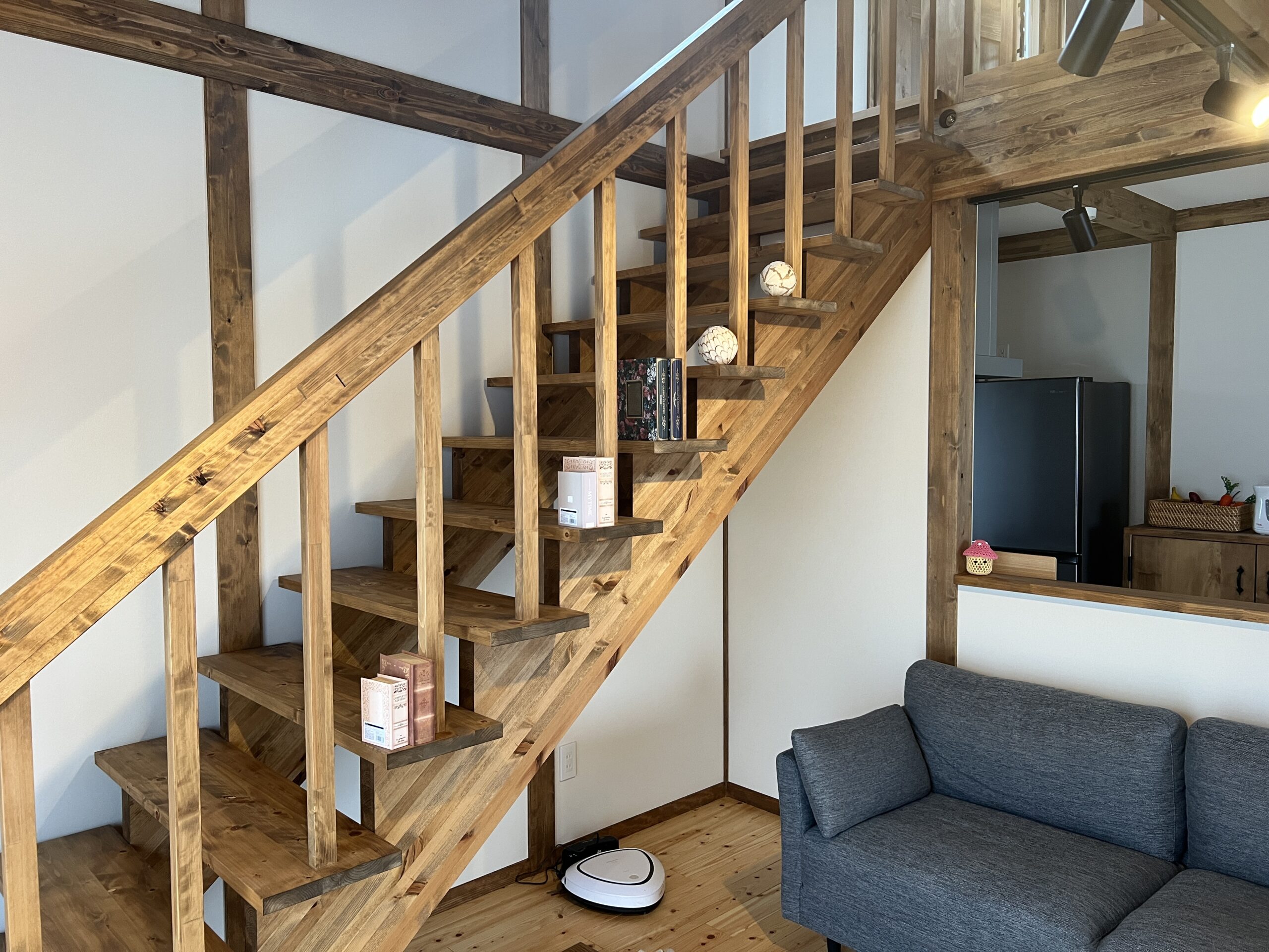 木のぬくもりと力強さが視覚的に心地よく、空間に奥行きとデザイン性を与えます。