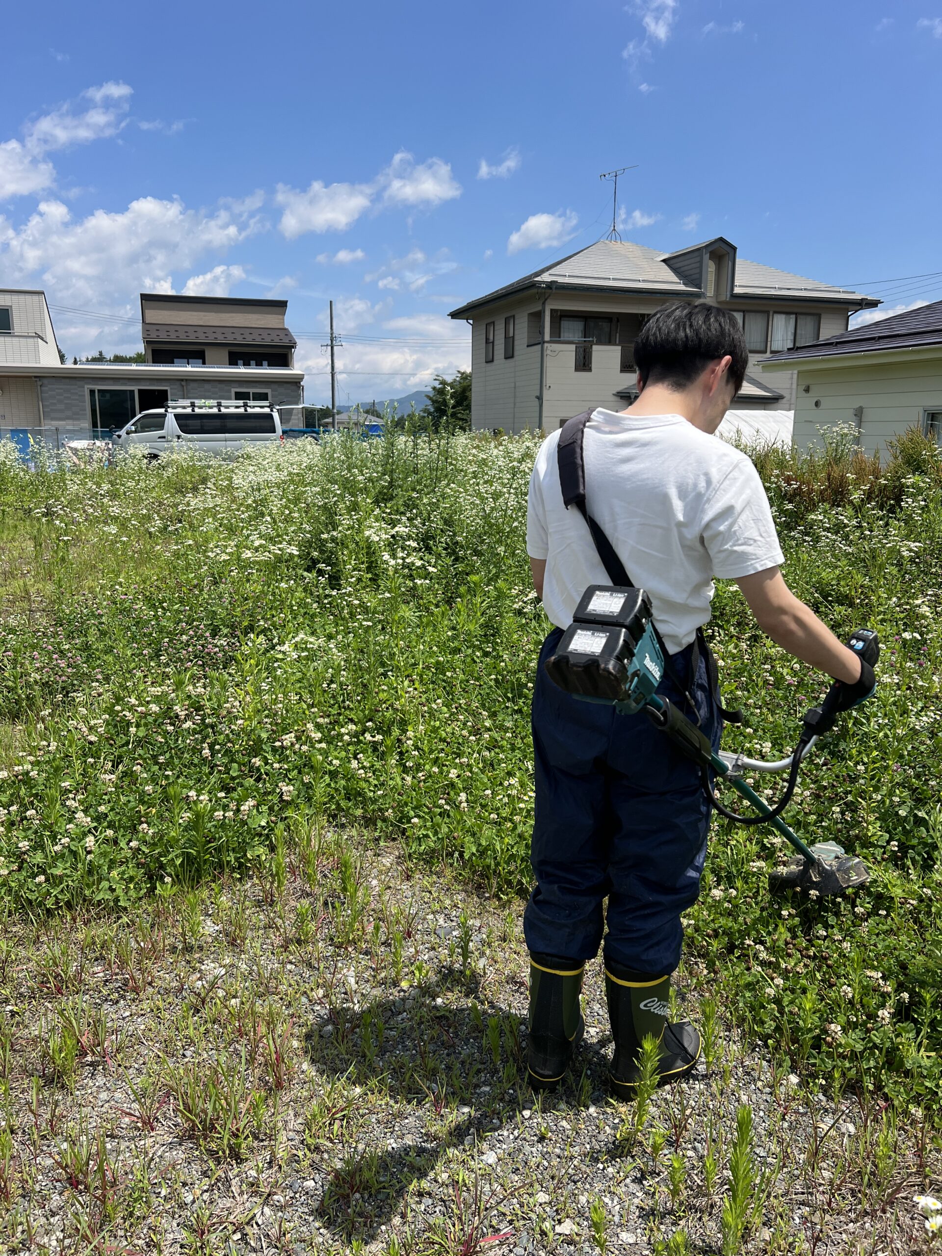 エルハウスの不動産事業部の松下さんと一緒に協力して草刈りをしました!
