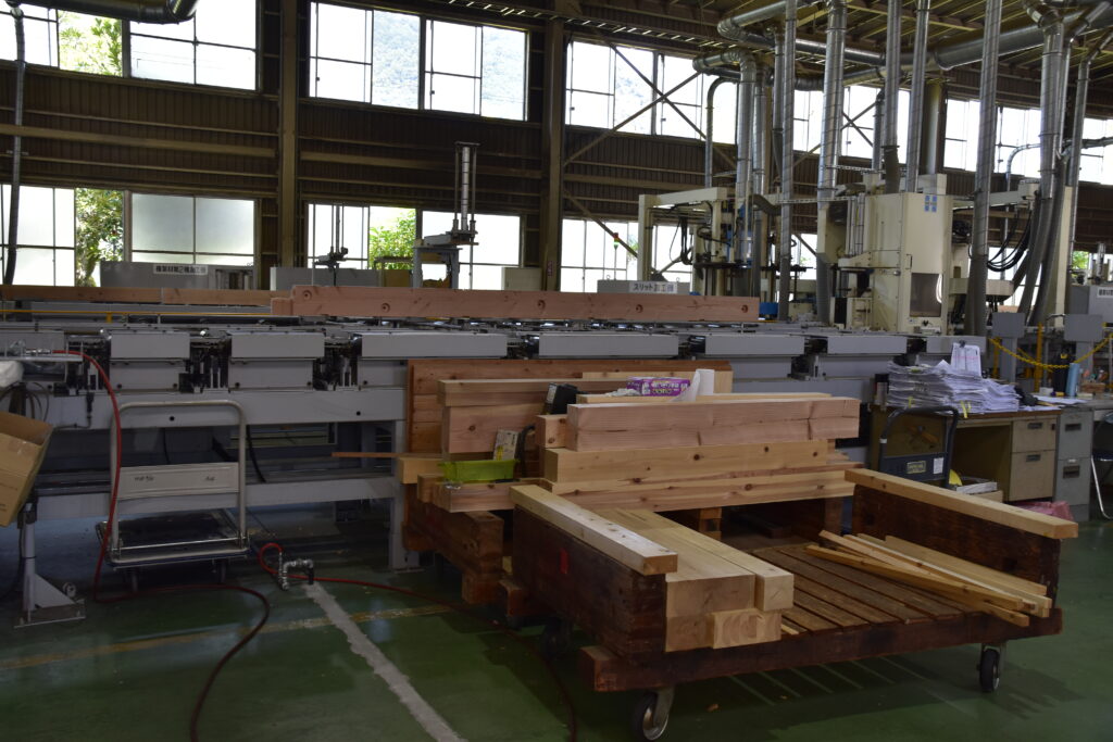 最初に訪れたのは、建具の枠に使われている部材をはじめ造作材を製造する造作材工場。
