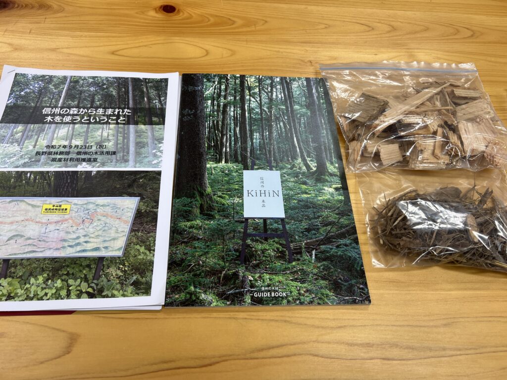 前半は、長野県の森林の現状についてや県産材についてを