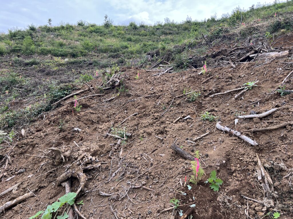 ピンク色のヒモをつけているのが今回、植樹したものです。